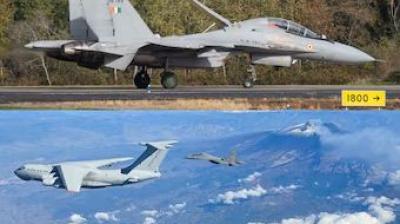 गरुड़ 25 में फ्रांस के आसमान में उड़ रहे सुखोई-30एमकेआई और राफेल विमान