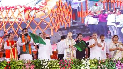 अमित शाह, गृह एवं सहकारिता मंत्री एवं नीतीश कुमार, मुख्यमंत्री,बिहार द्वारा सीतामढ़ी-दिल्ली अमृत भारत एक्सप्रेस के परिचालन का हरी झंडी दिखाकर शुभारंभ