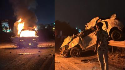 इंदौर। महू तहसील (Mhow tehsil) के मानपुर थाना (Manpur Police Station) क्षेत्र अंतर्गत आने वाले इंदौर-खलघाट (Indore-Khalghat) हाइवे ( highway) पर एक भीषण सड़क हादसे में ओमनी वेन में आग लग...