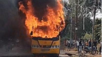 इंदौर में चलती स्कूल बस अचानक बनी आग का गोला, गनीमत रही कि सभी बच्चे सुरक्षित बाहर निकाल लिए गए