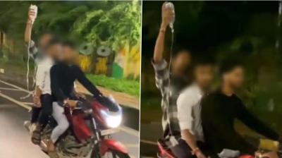 सलाइन के साथ बाइक की सवारी! बीमार दोस्त को लेकर दो युवकों का अजीब कारनामा, लोगों ने कहा ‘ये कैसा मज़ाक?’