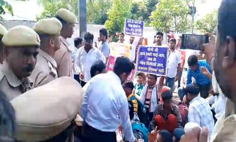 69 हजार भर्ती अभ्यर्थियों का हंगामा, डिप्टी सीएम आवास पर जमकर हुआ प्रदर्शन