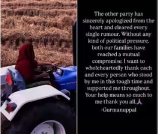 चंडीगढ़: सोशल मीडिया पर वायरल हुए पंजाब की मशहूर ट्रैक्टर वाली लड़की के एमएमएस प्रकरण में अब नया मोड़ आ गया है। पंजाब की मशहूर ट्रैक्टर गर्ल और इंफ्लुएंसर उप्पल फार्म की लड़की ने अपने मंगेतर और उसके परिवार को माफ कर दिया है। दोनों परिवारों के बीच आपसी बातचीत के बाद समझौता हो गया है। लड़की ने साफ कहा है कि यह पूरा मामला कुछ ग़लतफ़हमियों की वजह से खड़ा हुआ था, जिन्हें अब दूर कर लिया गया है। उसने सभी पेजों और चैनलों से अपील की है कि वे इस मामले से जुड़ा कोई भी कंटेंट अब आगे शेयर न करें, ताकि दोनों परिवार शांति से आगे बढ़ सकें।