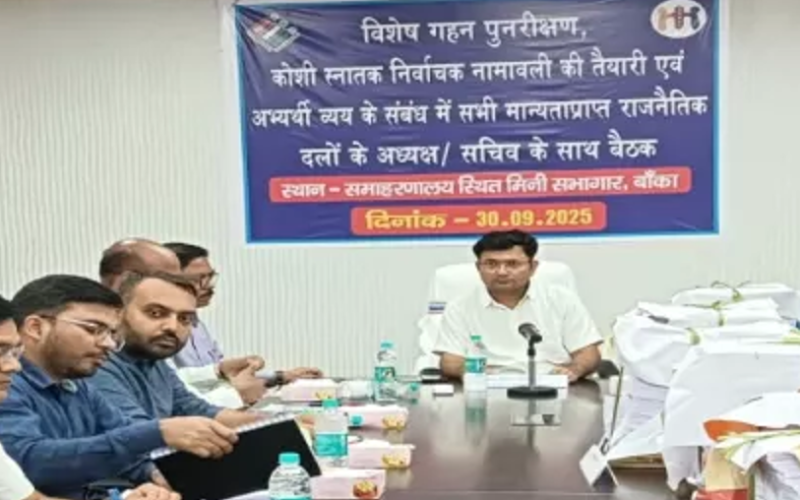 बांका। जिला निर्वाचन पदाधिकारी-सह-डीएम की अध्यक्षता में मंगलवार को विशेष गहन पुनरीक्षण के क्रम में निर्वाचक सूची का अंतिम प्रकाशन किया गया। इस अवसर पर सभी मान्यता प्राप्त राजनीतिक दलों के अध्यक्ष, सचिव और प्रतिनिधियों के साथ बैठक आयोजित की गई।