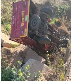 टक्कर के बाद बेकाबू होकर पुलिया से नीचे गिरा टेंपो