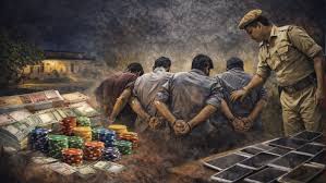 पुलिस की कार्रवाई में पकड़े गए जुआरी, घरों से निकालकर थाना पहुंचाया