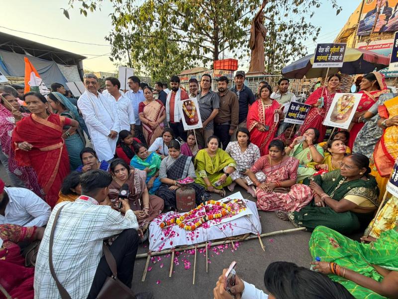 दुर्ग में गैस सिलेंडर कीमत बढ़ोतरी पर कांग्रेस का विरोध
