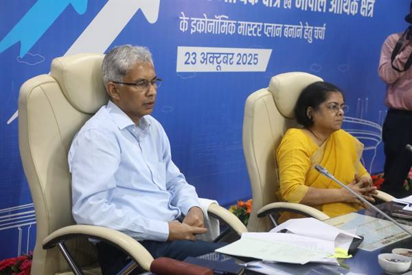 भोपाल : मुख्य सचिव अनुराग जैन की अध्यक्षता में मध्यप्रदेश की आर्थिक प्रगति को नई दिशा देने के उद्देश्य से गुरुवार को मंत्रालय में बैठक हुई। बैठक में ‘ग्रोथ हब (G-Hub)’ पहल का औपचारिक शुभारंभ किया गया। यह महत्वाकांक्षी पहल नीति आयोग और मध्य प्रदेश सरकार के संयुक्त प्रयास से इंदौर एवं भोपाल क्षेत्रों के लिए व्यापक और दीर्घकालिक आर्थिक विकास रणनीति तैयार करने की दिशा में एक बड़ा कदम है। इस अवसर पर नीति आयोग के प्रतिनिधिमंडल का नेतृत्व प्रिंसिपल इकोनॉमिक एडवाइजर सुएना रॉय ने किया।