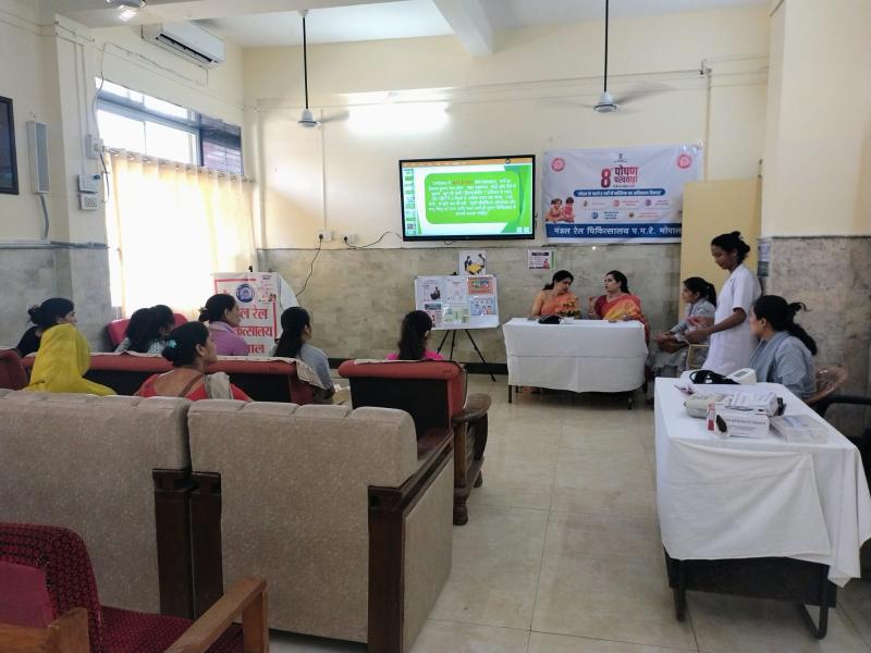 भोपाल। “8वां पोषण पखवाड़ा” के अंतर्गत दिनांक 09 अप्रैल से 23 अप्रैल 2026 तक मंडल रेल चिकित्सालय, पश्चिम मध्य रेलवे, भोपाल में विभिन्न जागरूकता एवं जनहितकारी गतिविधियों का सफल आयोजन किया गया। यह कार्यक्रम मंडल रेल प्रबंधक श्री पंकज त्यागी के मार्गदर्शन एवं मुख्य चिकित्सा अधीक्षक, भोपाल श्री अजय डोगरा के नेतृत्व में संपन्न हुआ।इस दौरान गर्भवती महिलाओं के मध्य पोषण संबंधी जागरूकता बढ़ाने हेतु विशेष चर्चा सत्र आयोजित किए गए, जिनमें संतुलित आहार, मातृ एवं शिशु स्वास्थ्य तथा शीघ्र स्तनपान के महत्व पर विस्तार से जानकारी दी गई। साथ ही, बच्चों में स्क्रीन टाइम को कम करने के उद्देश्य से अभिभावकों को व्यावहारिक सुझाव प्रदान किए गए।कार्यक्रम के अंतर्गत रेल लाभार्थियों के बीच जागरूकता बढ़ाने हेतु पेम्फलेट का वितरण किया गया। इसके अतिरिक्त, बच्चों में स्क्रीन के विकल्प के रूप में खेल-कूद को बढ़ावा देने हेतु पोस्टर प्रदर्शनी आयोजित की गई तथा ओपीडी परिसर में बच्चों के लिए पारंपरिक खेल “लंगड़ी” जैसी गतिविधियों का आयोजन किया गया।इस पहल का उद्देश्य बच्चों को सक्रिय एवं स्वस्थ जीवनशैली अपनाने के लिए प्रेरित करना तथा समाज में पोषण के प्रति जागरूकता बढ़ाना रहा। कार्यक्रम के माध्यम से उपस्थित जनों को स्वास्थ्य संबंधी महत्वपूर्ण जानकारी प्राप्त हुई और उन्होंने इस प्रकार के आयोजनों की सराहना की।