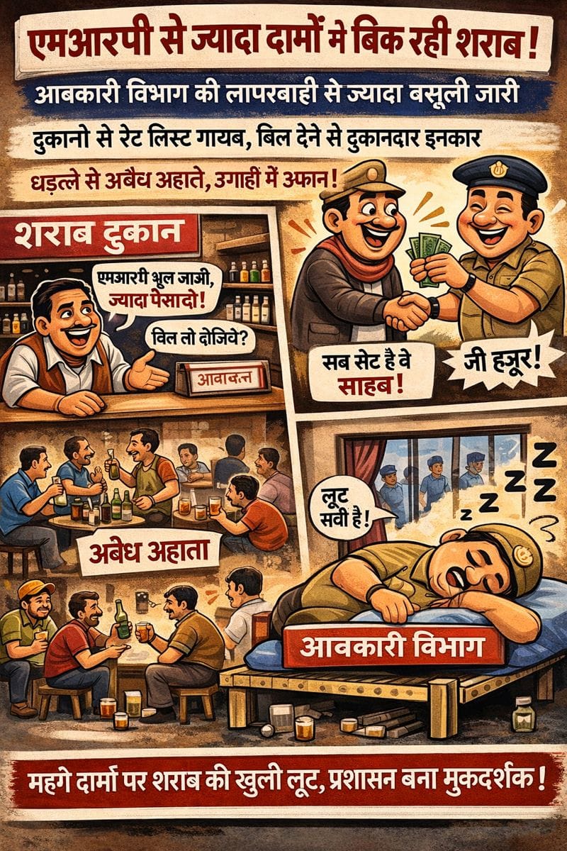 क्या आबकारी विभाग और पुलिस इस खुलेआम हो रही लूट पर कार्रवाई करेंगे या यह खेल ऐसे ही चलता रहेगा?