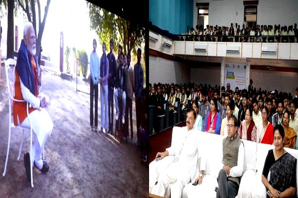 भोपाल : प्रधानमंत्री नरेन्द्र मोदी ने सोमवार को 'परीक्षा पे चर्चा' में मध्यप्रदेश के विद्यार्थियों से भी बात की। उन्होंने विद्यार्थियों से परीक्षा के दौरान आने वाली चुनौतियों का सामना करने और सकारात्मकता के साथ आगे बढ़ने पर बातचीत की। विद्यार्थियों ने चर्चा के दौरान प्रधानमंत्री मोदी से विभिन्न विषयों पर सवाल किये। इन सवालों का प्रधानमंत्री ने रोचक उदाहरणों के साथ जवाब दिया। स्कूल शिक्षा मंत्री उदय प्रताप सिंह भोपाल के सुभाष उत्कृष्ट विद्यालय में प्रसारित किये गये कार्यक्रम में शामिल हुए।