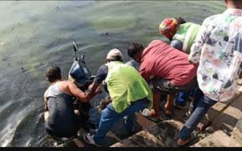 तालाब में गिरी शिक्षिका, एक्टिवा भी साथ में डूबी; सुरक्षित बचाव