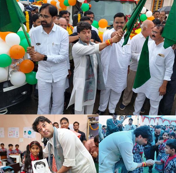 केंद्रीय मंत्री ज्योतिरादित्य सिंधिया ने आज अशोकनगर जिले की स्वास्थ्य सेवाओं को और मजबूत करने के तहत अपनी सांसद निधि से 50 लाख रुपए की राशि से जिला चिकित्सालय अशोकनगर को 32 लाख रुपए की अत्याधुनिक सुविधाओं से युक्त एंबुलेंस और सिविल अस्पताल चंदेरी को 18 लाख रुपए की बेसिक लाइफ़ सपोर्ट एंबुलेंस प्रदान की। आज उन्होंने दोनों एंबुलेंस को हरी झंडी दिखाकर जनता को समर्पित किया। इस दौरान भाजपा जिला अध्यक्ष आलोक तिवारी चंदेरी विधायक जगन्नाथ सिंह रघुवंशी मुंगावली विधायक राव बृजेंद्र सिंह यादव पूर्व विधायक जजपाल सिंह जज्जी लड्डूराम कोरी केंद्रीय विद्यालय स्टाफ जनप्रतिनिधि गण छात्र छात्राएं एवं अभिभावक उपस्थित थे।