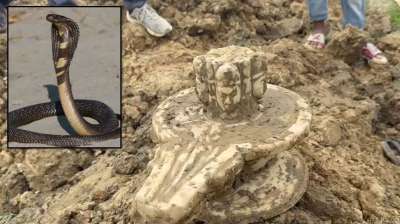 खोदाई में मिले शिवलिंग के पास दिखे दो सांप, ग्रामीण बोले- नाग-नागिन देने आए दर्शन
