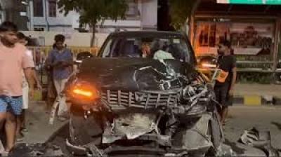 पटना हादसा: हाईवा की टक्कर से पुलिस वाहन में लगी आग