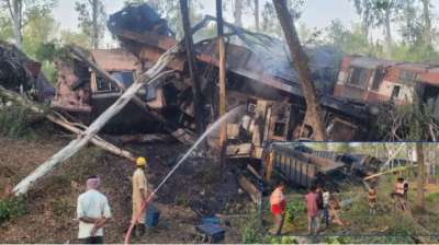 झारखंड के साहिबगंज जिले के बरहेट में एनटीपीसी फाटक के पास दो मालगाड़ियां आपस में टकरा गईं. टक्कर इतनी भीषण थी कि दोनों मालगाड़ियों के इंजन के परखच्चे उड़ गए....