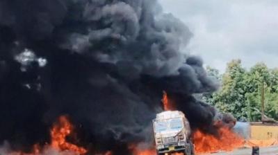 कोडरमा के बरियारडीह मोड़ की घटना , दमकल ने घंटों की मशक्कत के बाद बुझाई आग