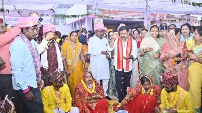 मुख्यमंत्री डॉ. यादव ने कृषि मंत्री के निवास पर पहुंचकर वर-वधू को दिया आशीर्वाद
